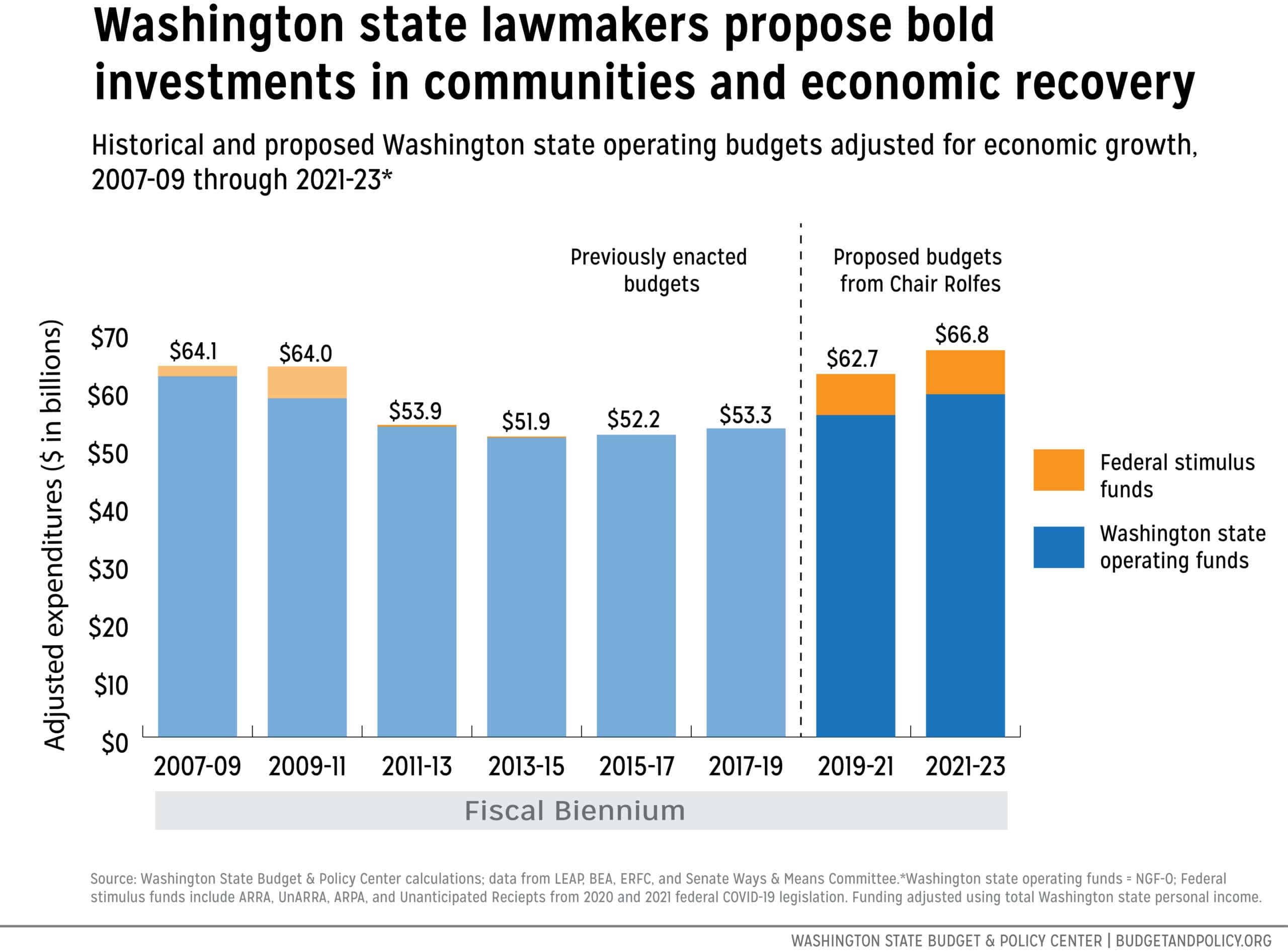 The current $59.2 billion Senate proposal, along with $7.5 billion in additional federal funds to the state, would put us back to where we were before the Great Recession took its worst toll on communities. In short, state lawmakers are taking the right approach by avoiding harmful budget cuts and ensuring we have adequate short-term and long-term investments to support the needs of the people, businesses, and communities that are struggling during this pandemic. If sustained, this proposed level of investment will finally put Washington on a path to recovery and greater equity.