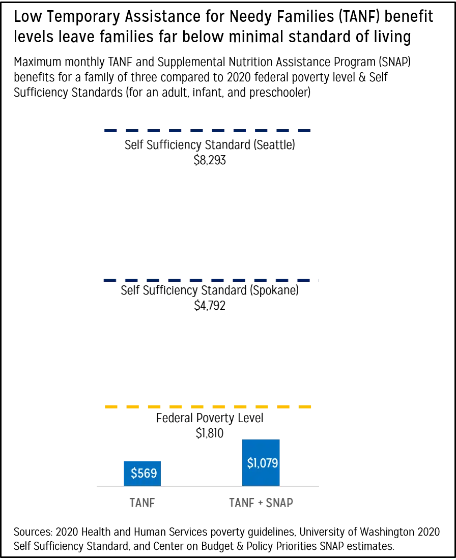Washington’s TANF benefits leave families far below the federal poverty level, without enough to cover rent and other essential expenses