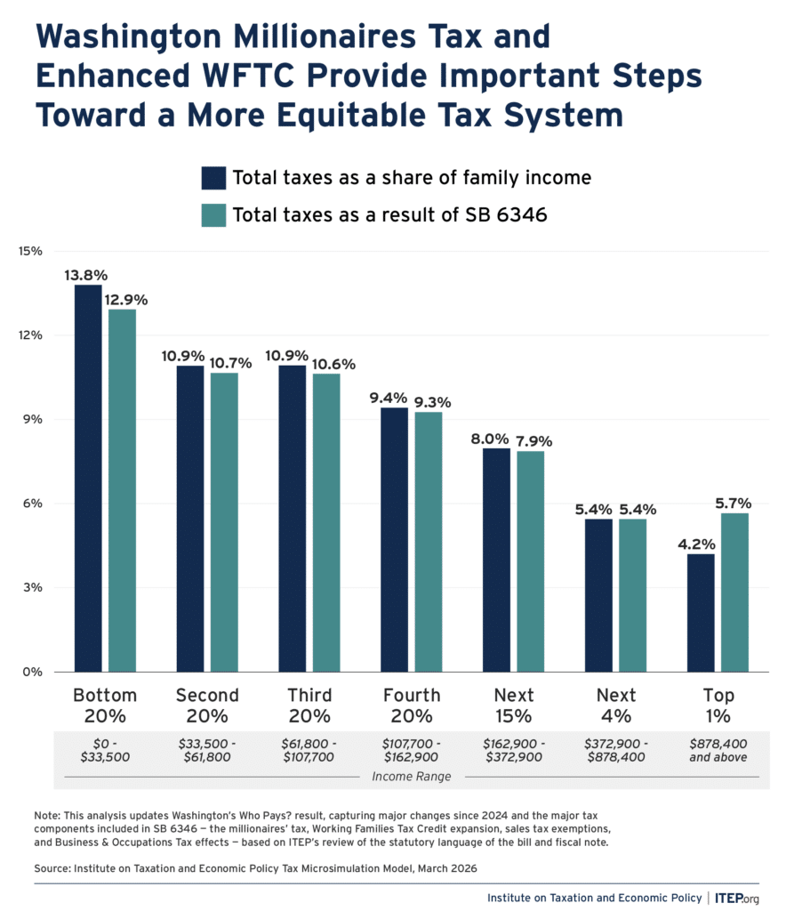 The passage of this historic legislation marks a significant step forward toward fixing our state’s upside-down tax code. (The graphic below from the Institute on Taxation and Economic Policy shows just how big a step it will take.)